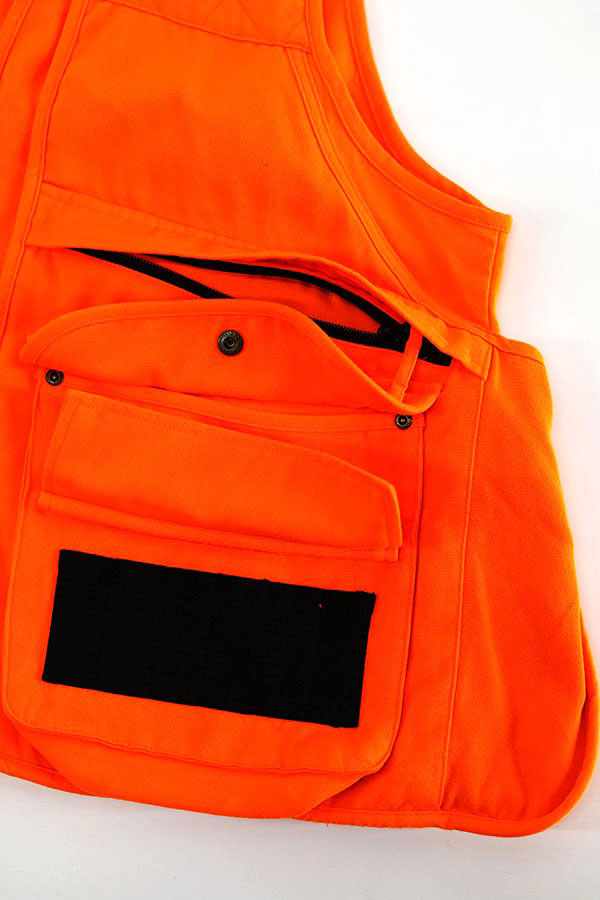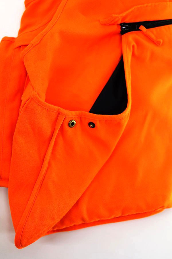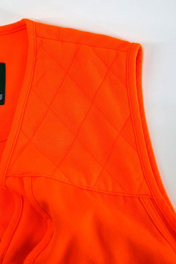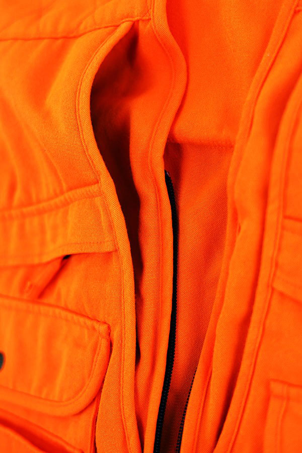 自然界には存在しない色で誤射されることを防ぐ目的や遭難時の目印として重宝されているハンティングらしい蛍光オレンジ単色のカラーワーク