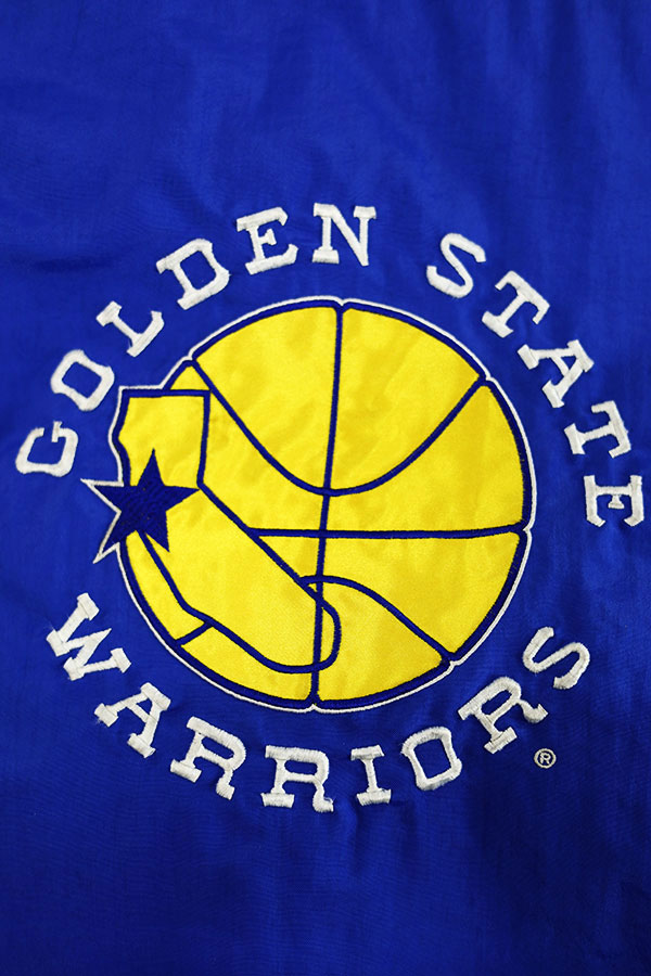 ジャケット全体がウォーリアーズのチームカラーの配色とロゴデザイン
